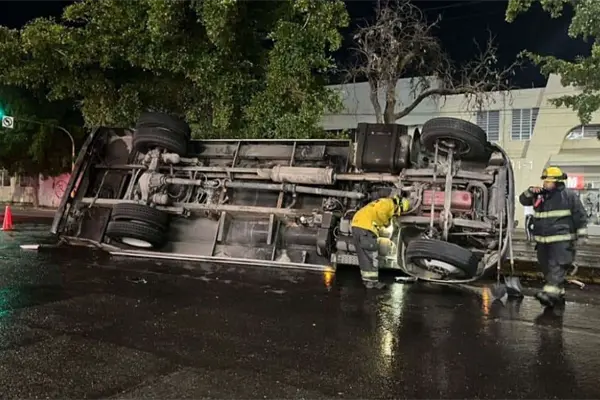 Tras el choque, el conductor de la pipa perdió el control del volante y quedó volcado junto al camellón central del bulevar.