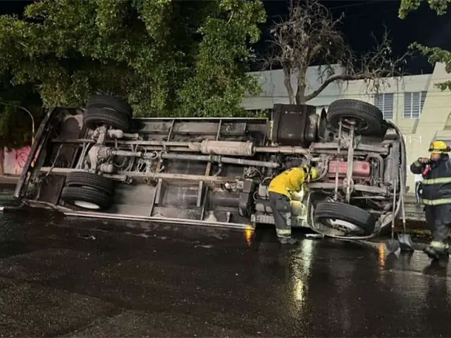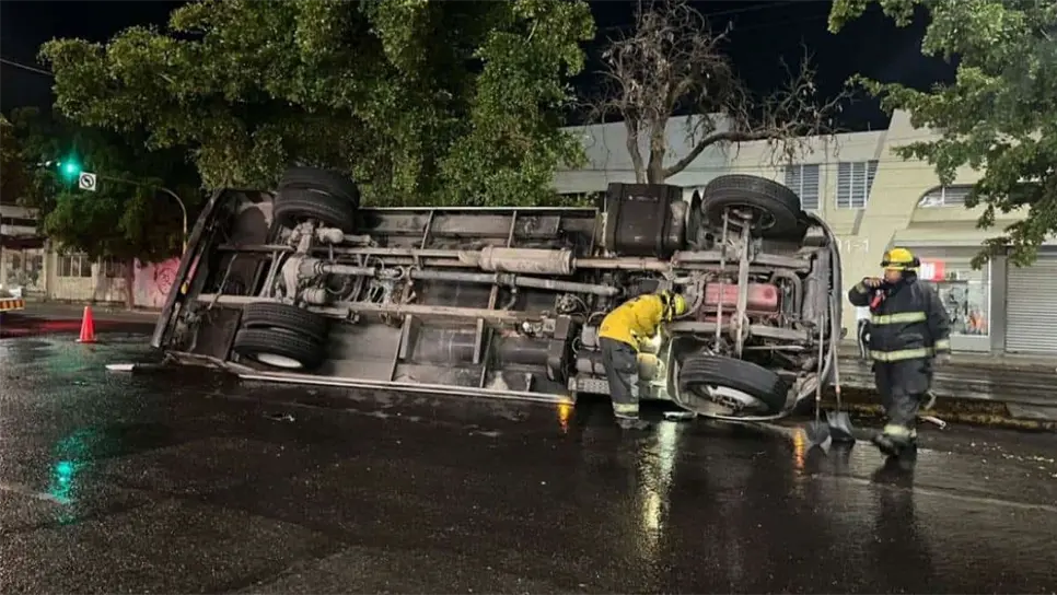 Daños materiales por varios miles de pesos dejó como saldo el choque y volcadura de una pipa del Ayuntamiento en el sector Centro de Culiacán.