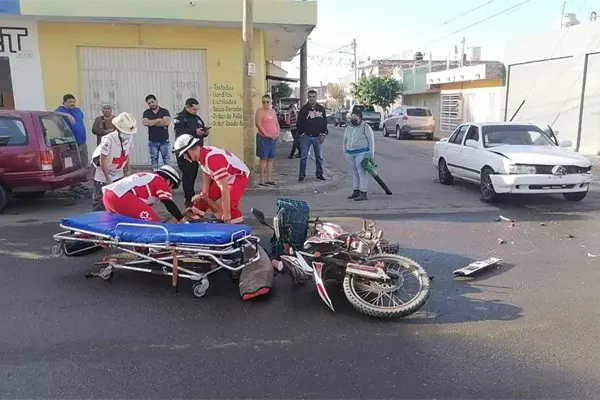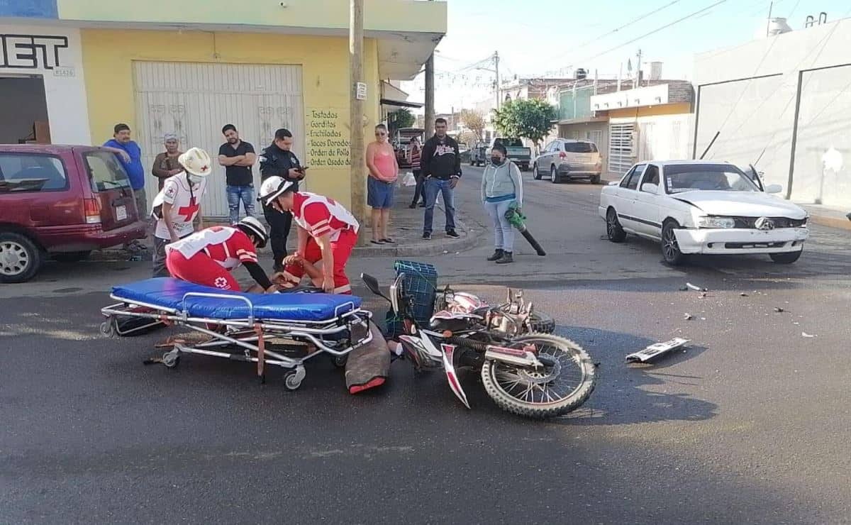 El percance se dio luego de que el motociclista chocara contra un vehículo Nissan Tsuru que circulaba por la calle Acuario
