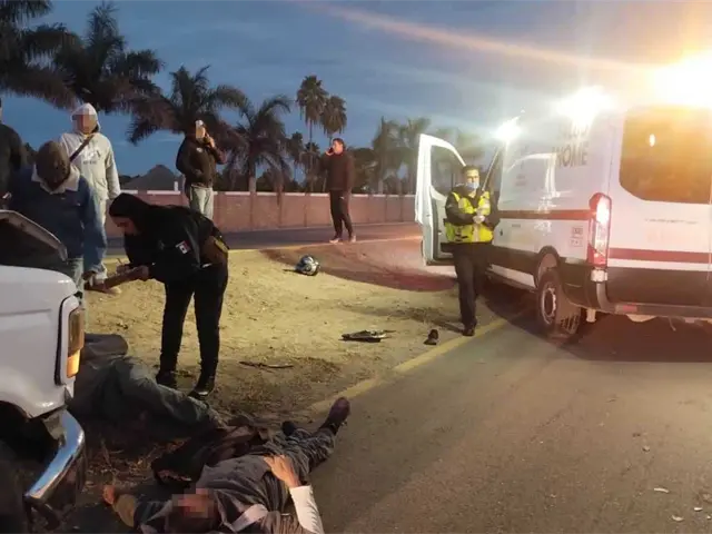 Según la información obtenida, los dos lesionados, ambos trabajadores de la construcción, circulaban en una motocicleta Italika y aparentemente se incorporaron a la carretera en el lugar mencionado, donde fueron impactados por el frente de una camioneta pickup blanca.