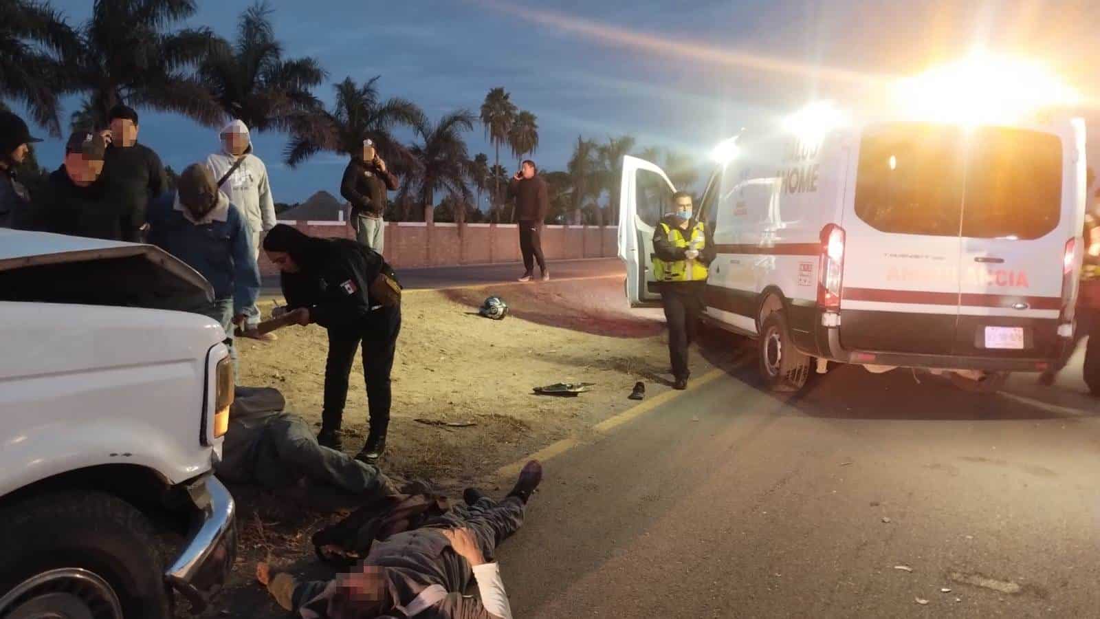 Camioneta embiste a una motocicleta sobre la carretera Mochis-Ahome; hay dos lesionados
