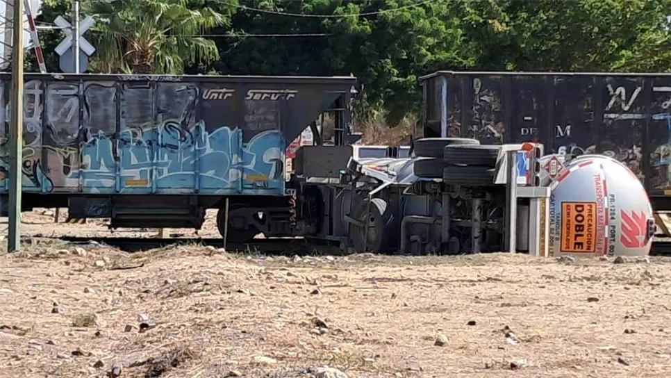 Un camión pipa que transportaba doble remolque fue embestido por un tren en el sector de la Feria Ganadera de Culiacán.