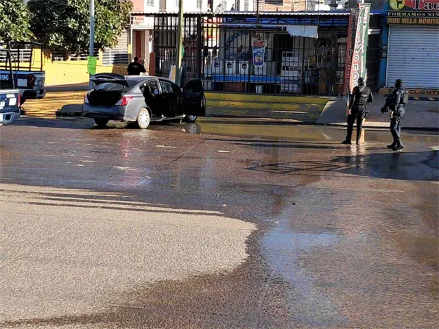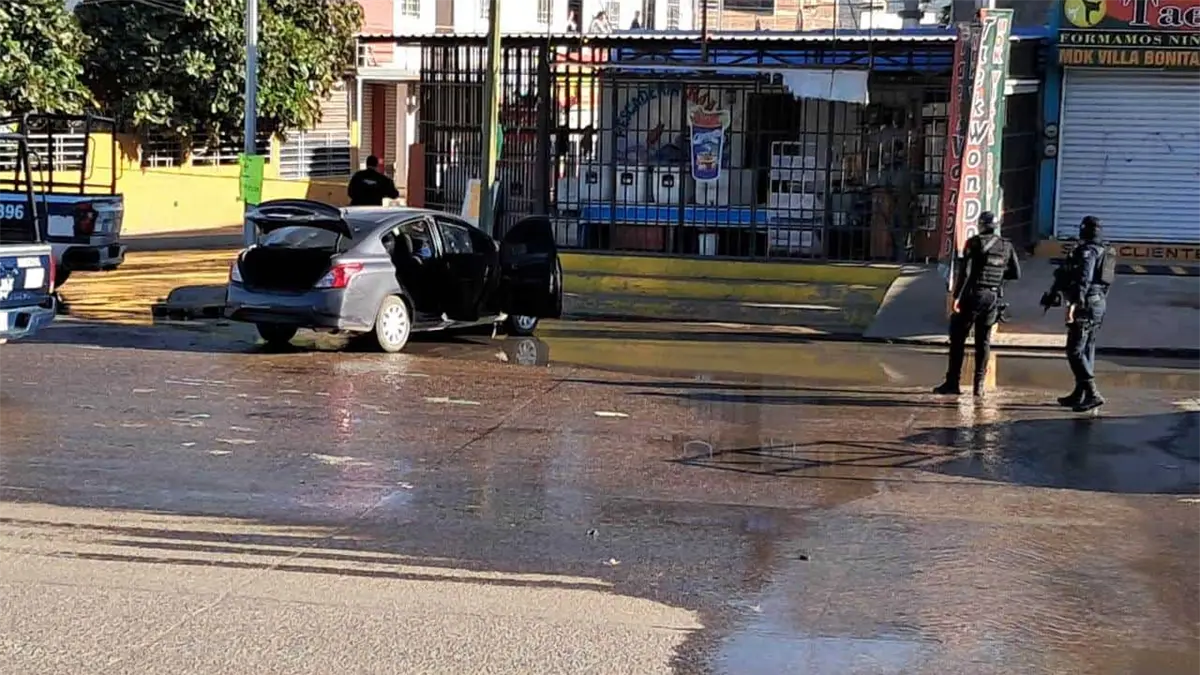 Los cuerpos quedaron en el interior de un vehículo Nissan Versa de color gris, con placas de la Condefa.