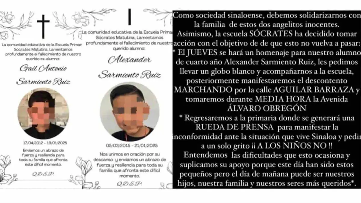 Marcharán para exigir justicia por los niños Gael y Alexander Sarmiento Ruíz, víctimas del ataque a balazos en el Fraccionamiento Los Ángeles, en Culiacán.