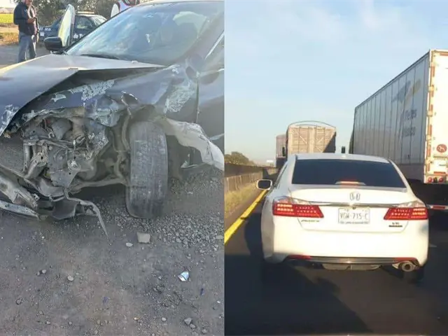 - El percance ocurrió alrededor de las 8:00 horas, cuando un Honda Accord, modelo 2006, conducido por Enrique N., de 30 años, perdió el control del volante y chocó contra un tráiler International, modelo 2007, manejado por Omar N., de 45 años.