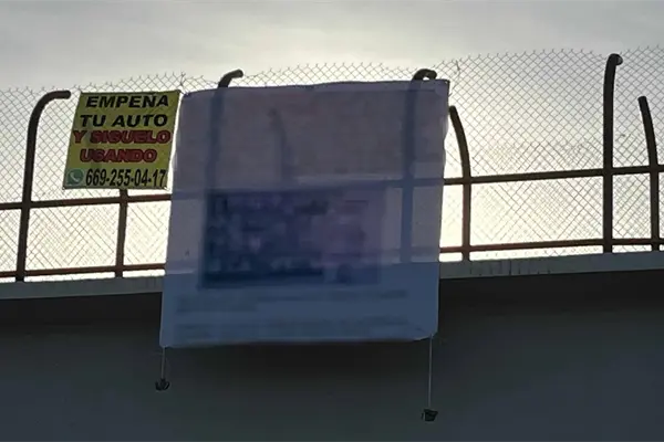 En las lonas se aprecia un mensaje hacia la Presidenta de la República en el que se le señala la situación que enfrenta Sinaloa en temas de seguridad.