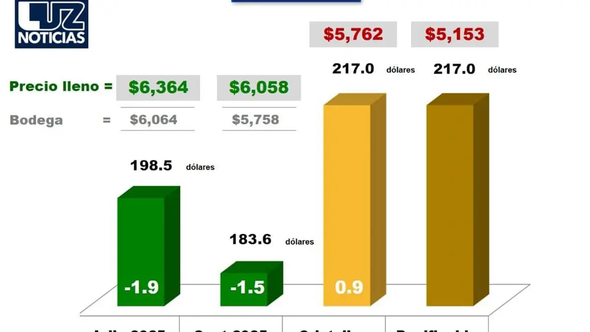 En tanto, los contratos a septiembre de 2025 también mostraron una baja de 1.5 dólares, ubicándose en 183.6 dólares por tonelada. En términos de precios en bodega, esto representa $5,758 por tonelada, sin considerar incentivos adicionales.