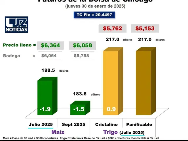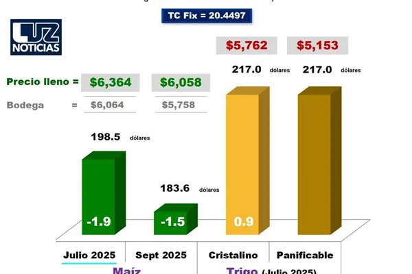 A diferencia del maíz, los futuros de trigo con vencimiento en julio de 2025 lograron un ligero incremento de 0.9 dólares, alcanzando los 217 dólares por tonelada. Esto se traduce en un precio final de $5,762 por tonelada de trigo cristalino y $5,153 por tonelada de trigo panificable, considerando las bases y apoyos correspondientes.