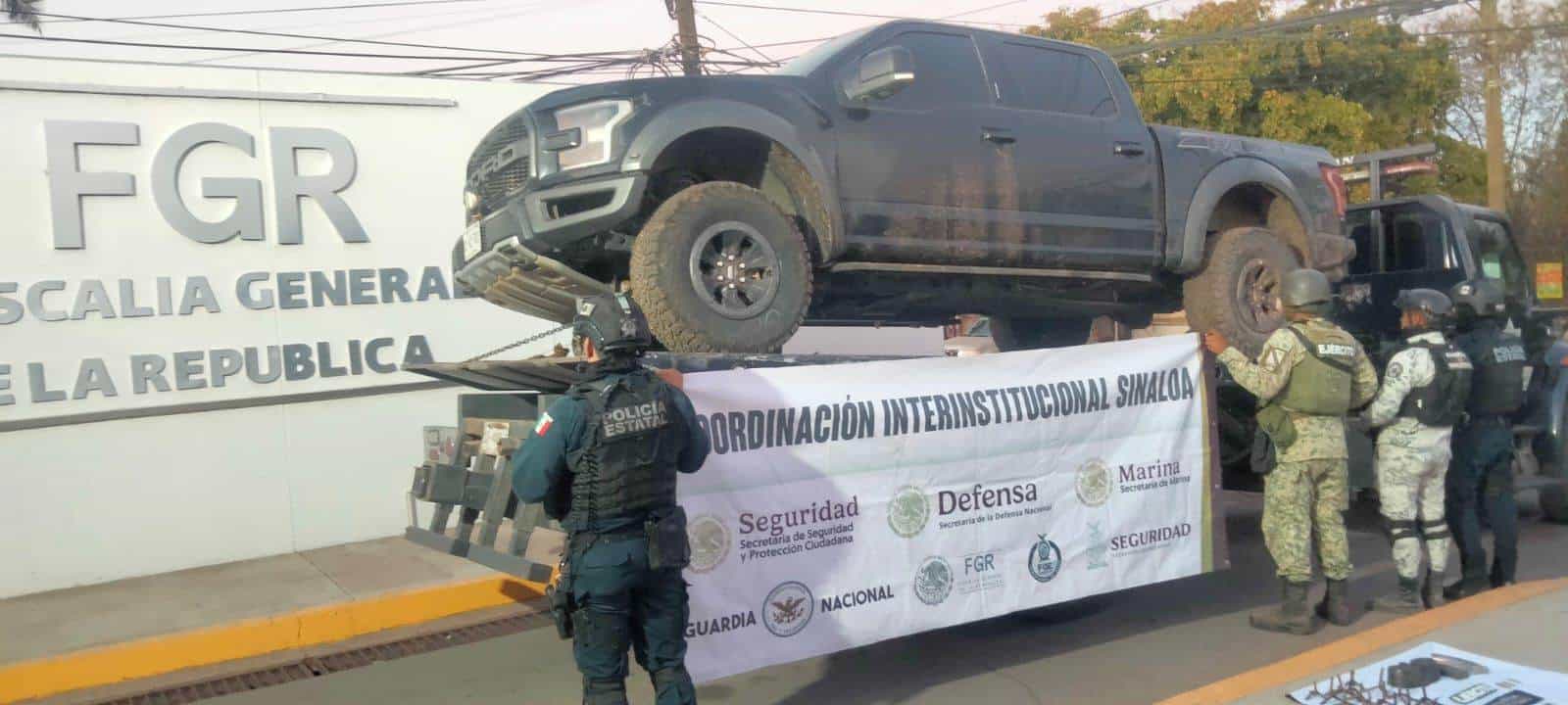 En un boletín de prensa, las autoridades señalaron que, durante un recorrido de seguridad, los elementos de la Secretaría de la Defensa Nacional, coordinados con la Guardia Nacional, la Secretaría de Marina, la Fiscalía General de la República, la Fiscalía General del Estado y la Secretaría de Seguridad Pública de Sinaloa, aseguraron una camioneta con cargadores de diversos calibres, municiones y puntas de acero en Culiacán.