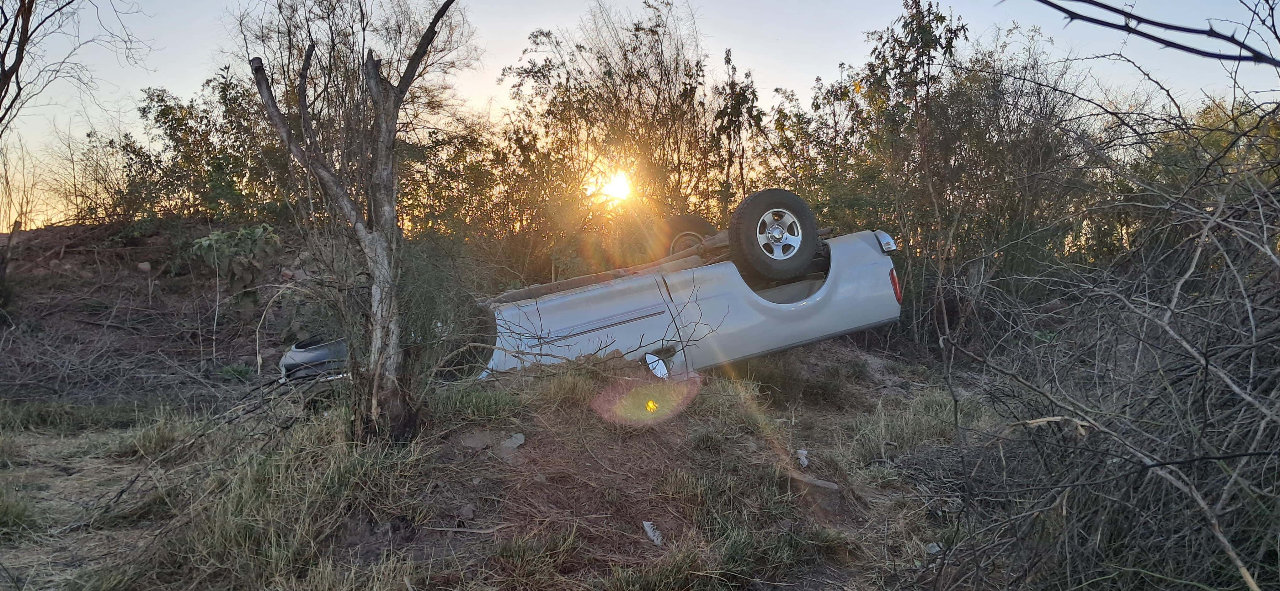 Al salir de la México 15, la camioneta volcó y quedó entre la maleza. Por suerte, el conductor logró ponerse a salvo por sus propios medios y solicitó ayuda al 911.