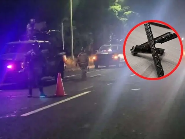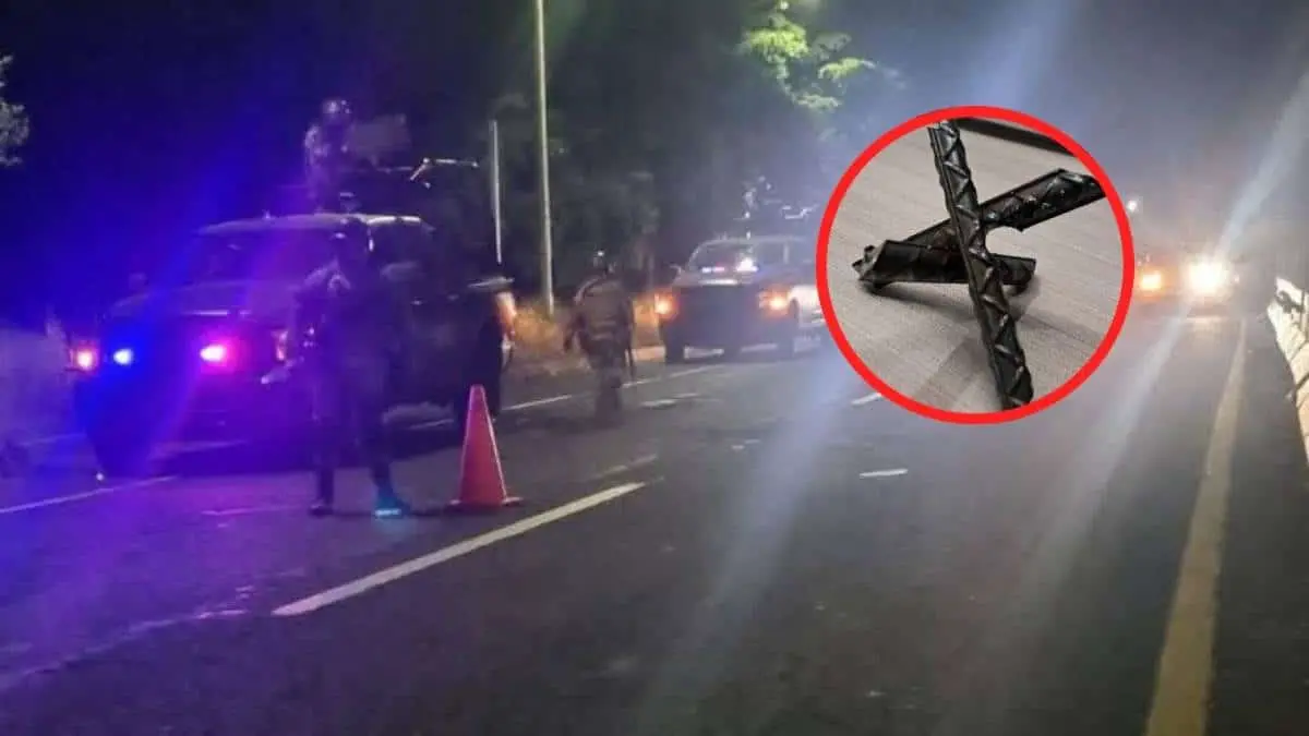 Los elementos de la Guardia Nacional y Ejército aseguraron más de 10 “ponchallantas" que fueron arrojados desde un vehículo en movimiento.
