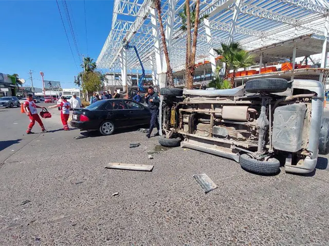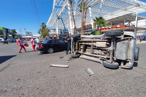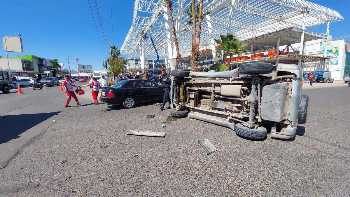 Conductor se pasa un alto y provoca volcadura en el centro de Los Mochis