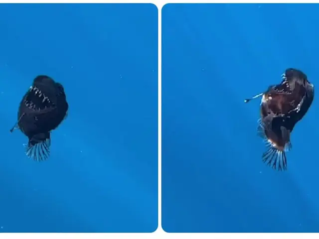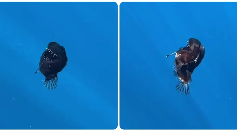 "¡¡Podría tratarse del primer avistamiento registrado en el mundo de un diablo negro o rape abisal adulto (Melanocetus johnsonii) vivo, a plena luz del día y en la superficie!! ", se lee en una publicación en Instagram.
