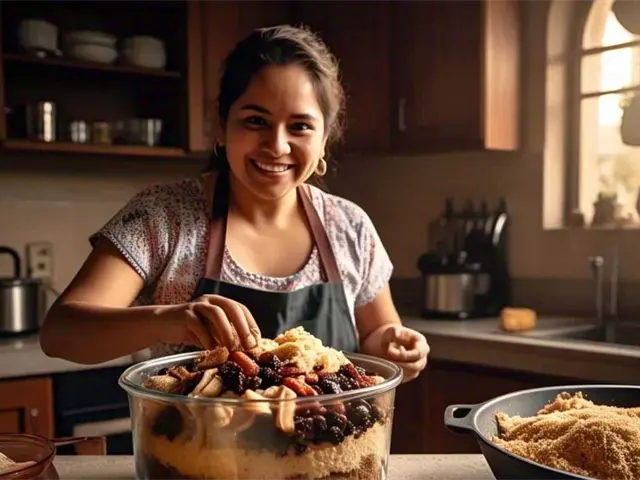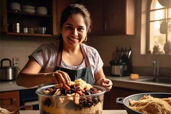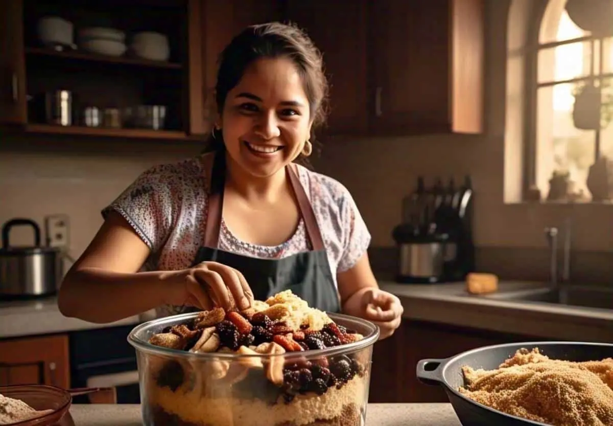 La preparación de la capirotada varía según la receta y la tradición familiar, pero generalmente se hace en capas, alternando los ingredientes y terminando con una capa de leche condensada o crema.