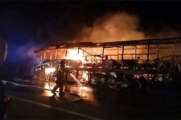 Un autobús con 38 pasajeros que viajaba desde la frontera a la ciudad de Los Mochis, en Ahome, ardió en llamas la noche de este domingo mientras circulaba sobre la carretera internacional México 15, muy cerca de la caseta de San Miguel Zapotitlán en Ahome.