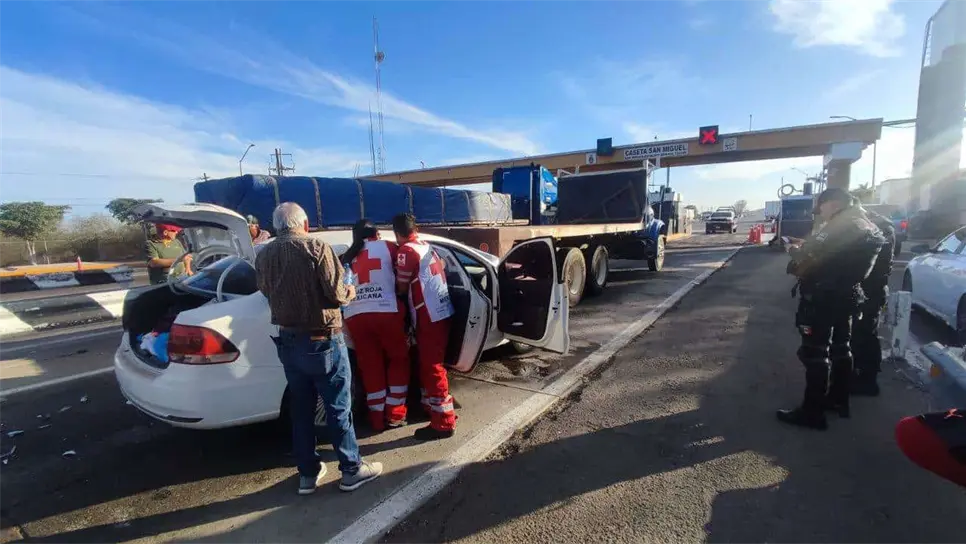 Según la información recabada, el conductor, un adulto mayor, no logró frenar por razones desconocidas y chocó contra la plataforma de un tráiler que se encontraba detenido en la caseta de peaje. El frente del vehículo quedó completamente destrozado como resultado del impacto.