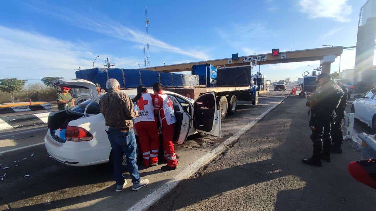 Cinco personas resultaron lesionadas, incluyendo dos mujeres de la tercera edad, y se reportaron cuantiosas pérdidas en daños materiales como saldo de un aparatoso accidente ocurrido esta tarde en la carretera internacional México 15, justo en la caseta de peaje San Miguel Zapotitlán, en Ahome.