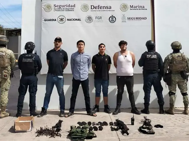 En la mencionada localidad, se aseguraron a cuatro personas, tres armas largas (una M4 y dos AK-47), dos armas cortas calibre 9 mm, 15 cargadores y dos chalecos, además de una SUV Toyota RAV4 de color blanco y una SUV Peugeot 2008 de color gris oscuro.