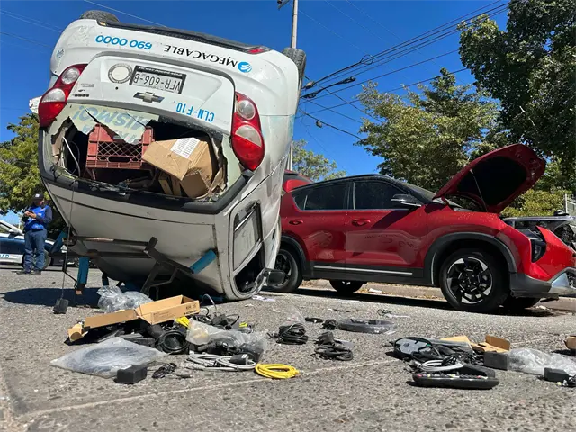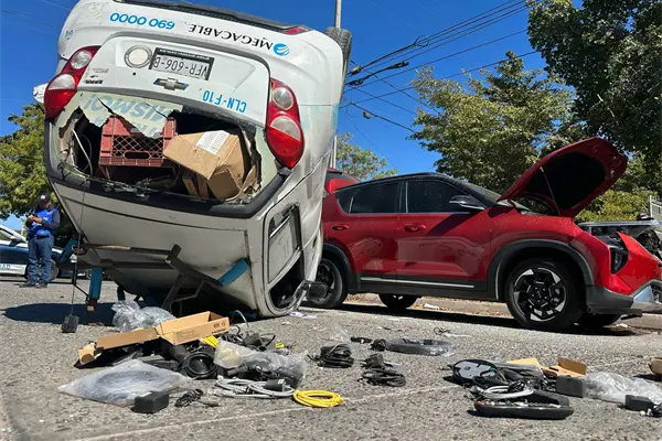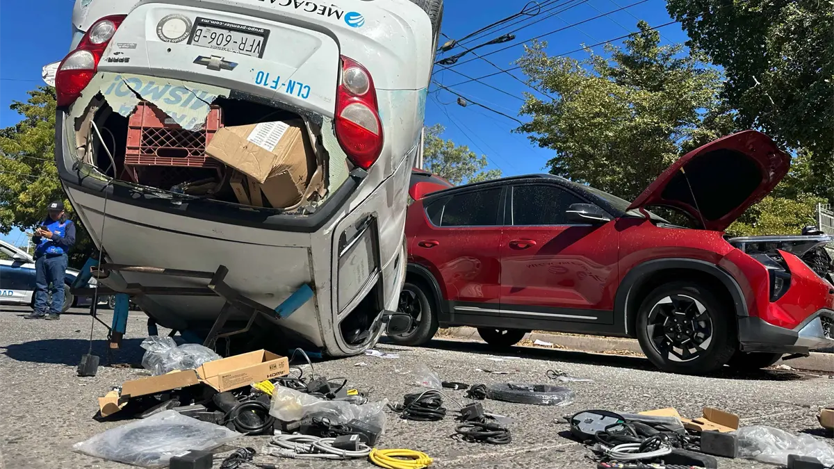 Con el golpe, el vehículo de la empresa de telecomunicaciones que en ese momento se dirigía rumbo al Sur, terminó volcado con los neumáticos hacia arriba, mientras que la vagoneta sólo sufrió daños al frente y quedó a punto de montarse a la banqueta de una escuela.
