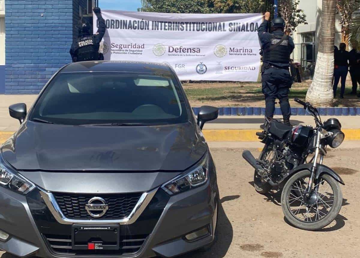 Los elementos de la Secretaría de Seguridad Pública del Estado, a través de la Policía Estatal Preventiva, en coordinación con la Secretaría de la Defensa Nacional, la Guardia Nacional, la Secretaría de Marina, la Fiscalía General de la República y la Fiscalía General del Estado, señalaron que lograron recuperar un automóvil y una motocicleta con reporte de robo en Culiacán.