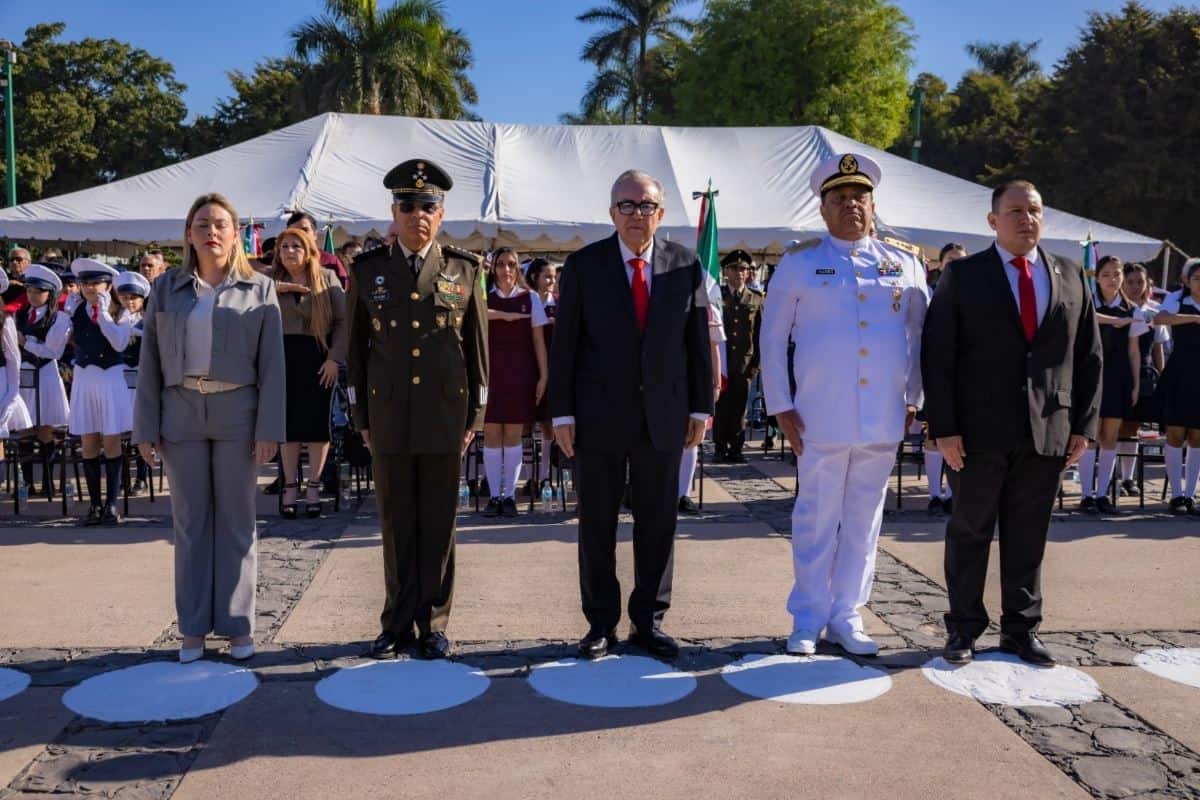 El gobernador Rubén Rocha Moya encabezó el acto cívico para conmemorar el Día de la Bandera Nacional, donde quedó de manifiesto que los sinaloenses cerrarán filas para defender la patria ante las injerencias de gobiernos extranjeros, en apoyo al llamado hecho por la presidenta de la República, Claudia Sheinbaum Pardo.
