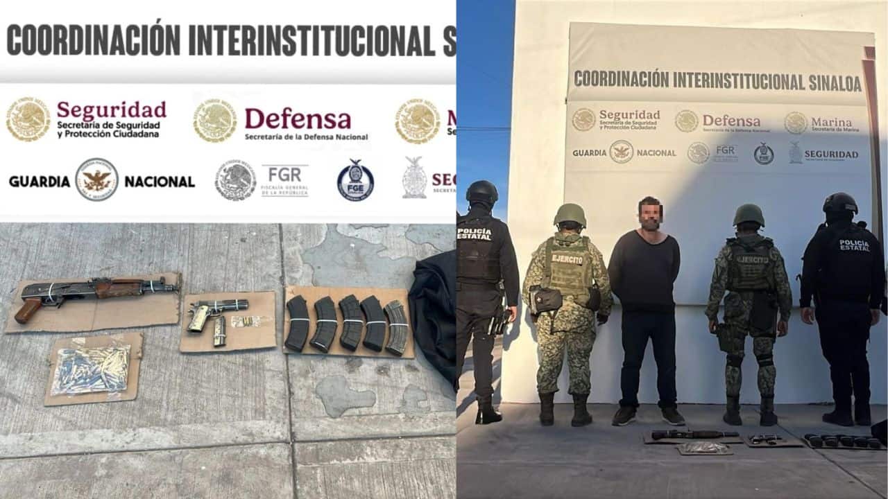 Los elementos de la Secretaría de la Defensa Nacional, en coordinación con la Guardia Nacional, la Secretaría de Marina, la Fiscalía General de la República, la Fiscalía General del Estado y la Secretaría de Seguridad Pública Estatal, detuvieron a un civil con armas de fuego en el municipio de Culiacán.