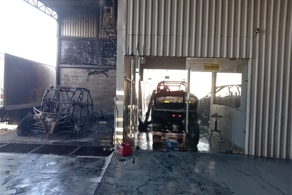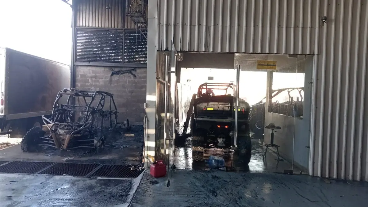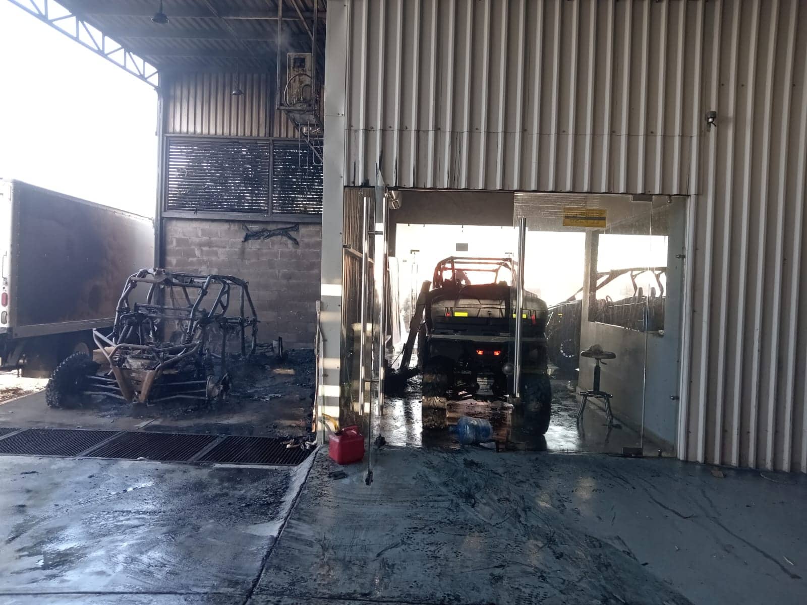 El saldo del incendio fue un vehículo todo terreno tipo RZR calcinado, valuado en más de 300 mil pesos, además de daños en los equipos de reparación y en la estructura del negocio.