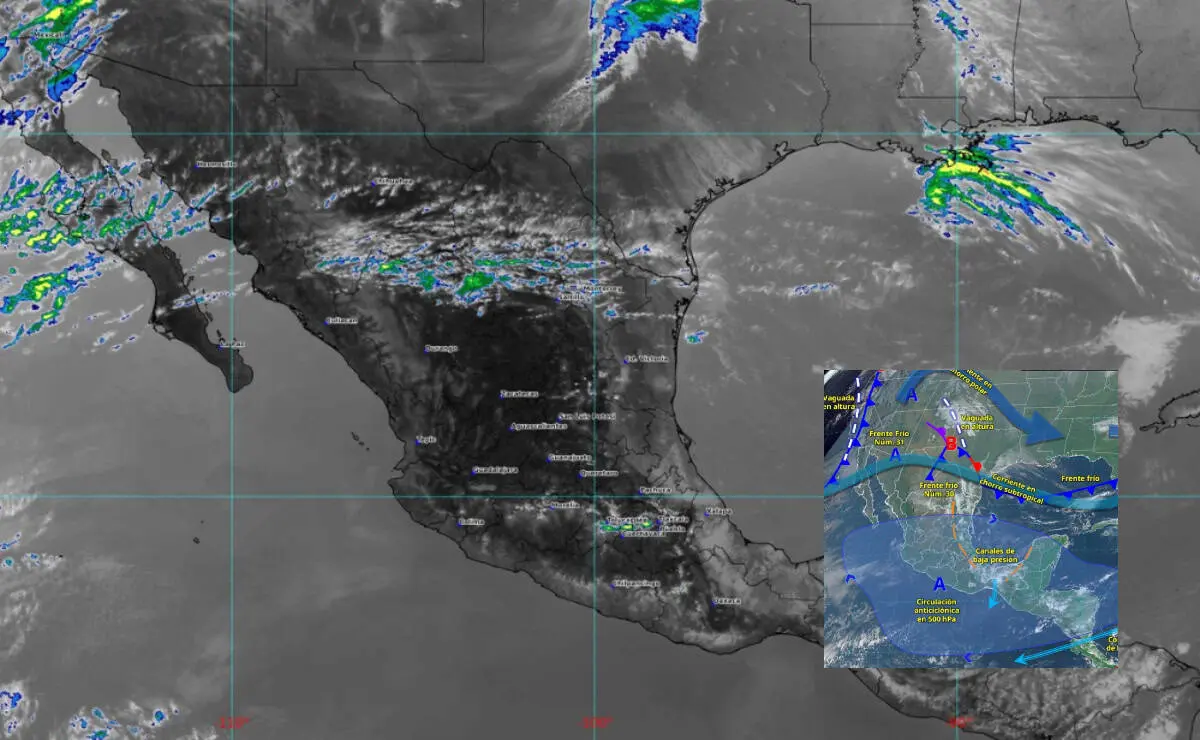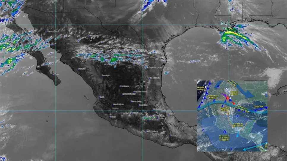 Se espera interacción con una vaguada en altura y la corriente en chorro subtropical, lo que traerá vientos fuertes y posibles tolvaneras en el norte y noreste de México. También se prevén lluvias con tormentas eléctricas en los estados de Nuevo León y Tamaulipas.