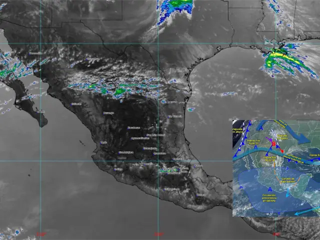 Este frente frío llegará al noroeste de México el jueves, asociado con una vaguada polar y corrientes en chorro polar. Afectará principalmente a Baja California y el noroeste del país, causando vientos fuertes y lluvias en esta región.