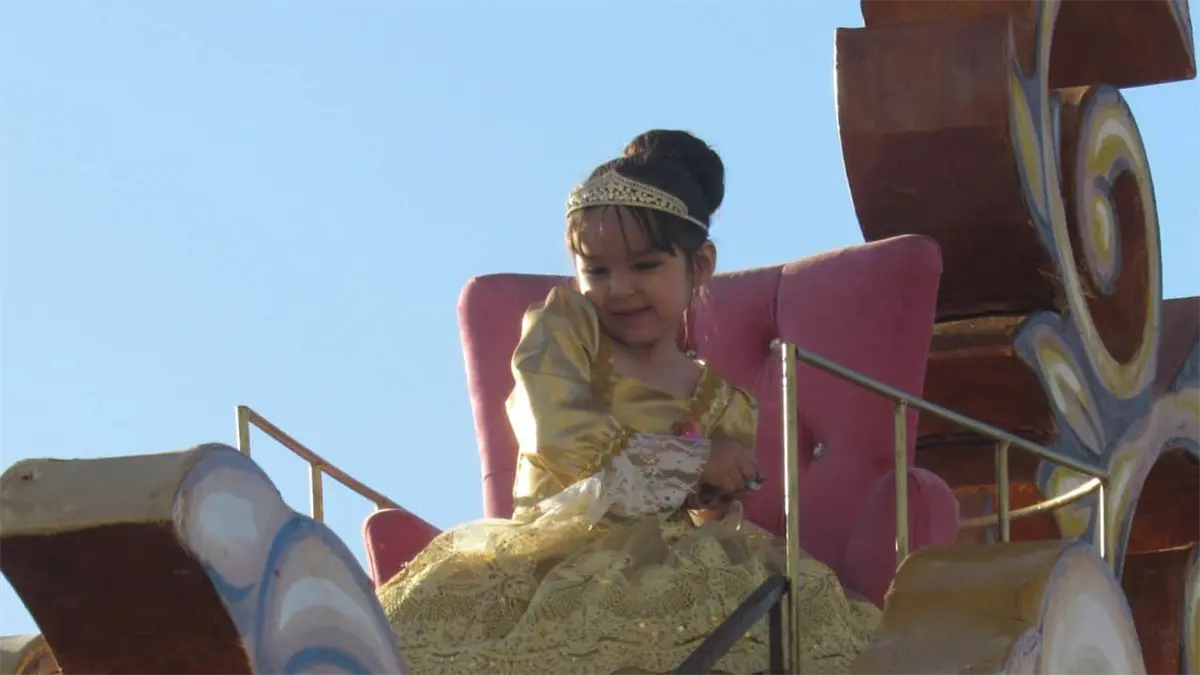 Desde la parte superior del carro, la niña saludaba emocionada a los asistentes, está pequeña ahora es conocida como la “reinita” del Carnaval.