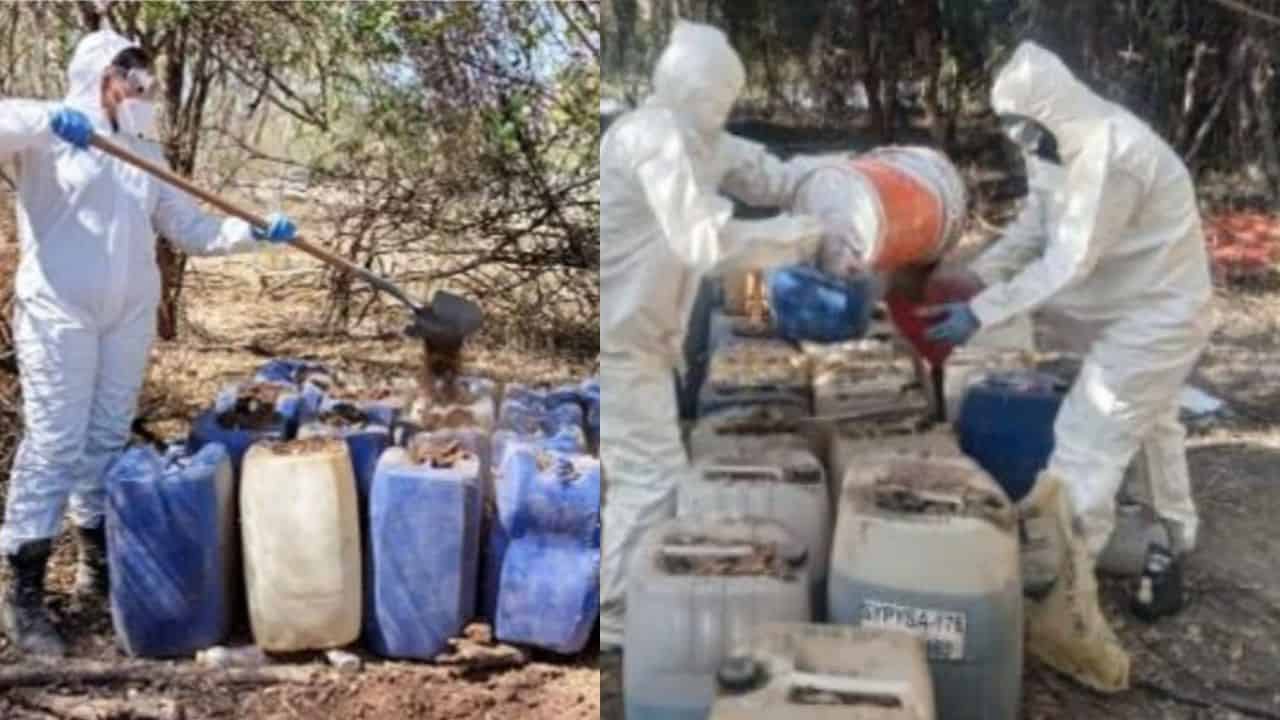 Mediante recorridos en los municipios de Culiacán y Cosalá, el personal militar pudo ubicar varios lugares destinados a la fabricación de drogas sintéticas.