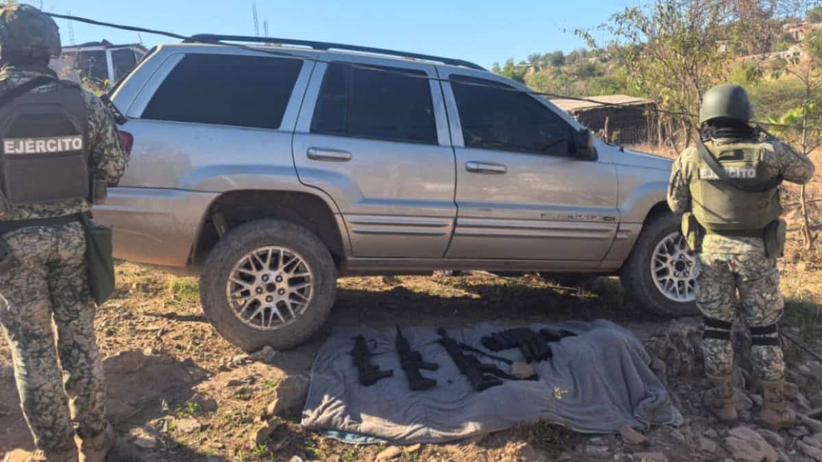 El personal militar estaba realizando reconocimientos terrestres en el sector cuando localizó una motocicleta con reporte de robo vigente y una camioneta blindada de la marca Jeep, que contenía los siguientes objetos de delito en su interior: