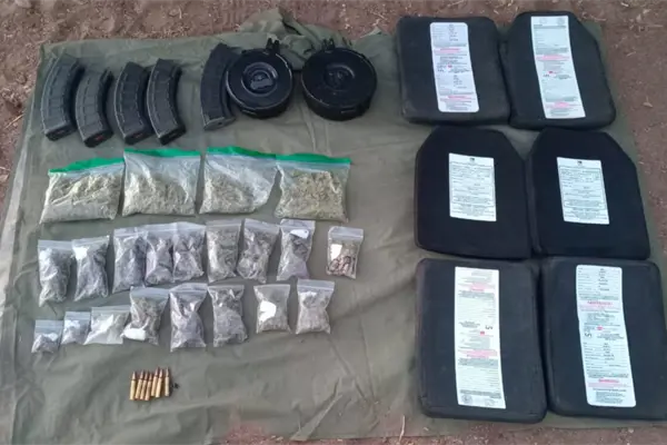 Durante el recorrido localizaron una camioneta Chevrolet Tahoe, con rastros de haber sufrido un percance, por lo que se acercaron a revisar y detectaron que no había personas en su interior; sin embargo, luego de inspeccionar, localizaron: