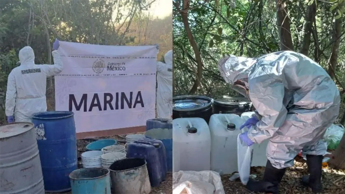 El personal militar localizó asentamientos utilizados para la fabricación de drogas sintéticas, donde se encontraron diversas: