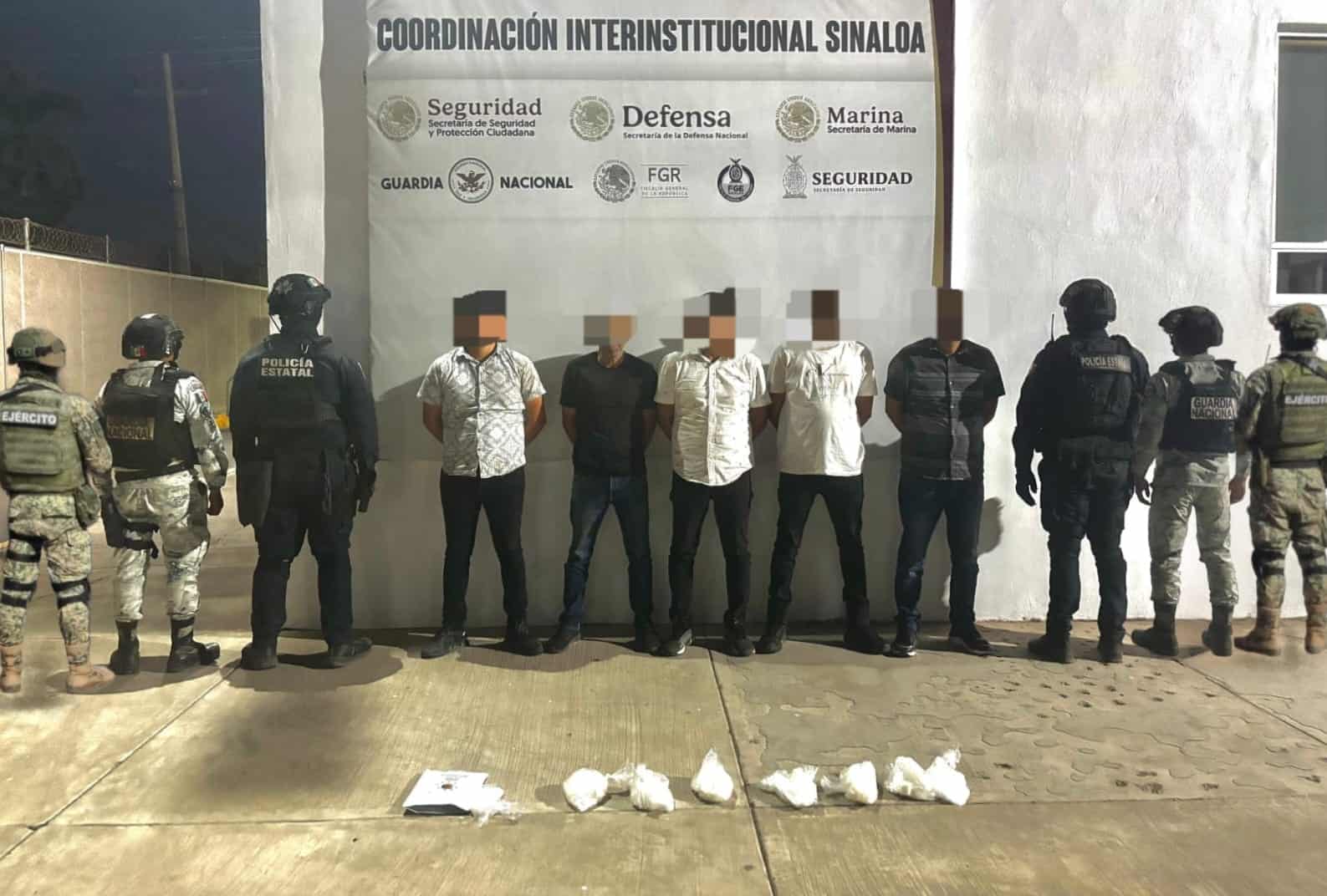 Detienen a cinco civiles y aseguran un vehículo y presunta droga en El Carrizalejo, Culiacán