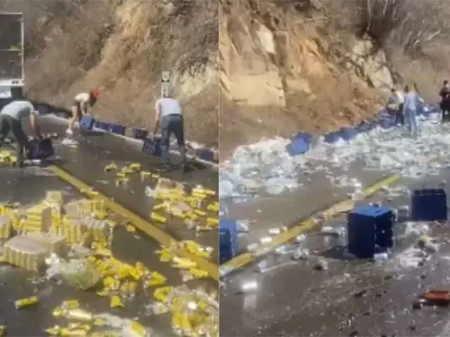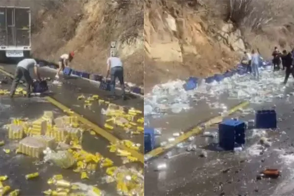 En imágenes del lugar se puede observar cómo algunos conductores bajaron de su unidad y aprovecharon la situación para llevarse parte de la mercancía, mientras que otros parecían recolectar las bebidas, al parecer con la intención de devolverlas al camión y no apropiárselas.