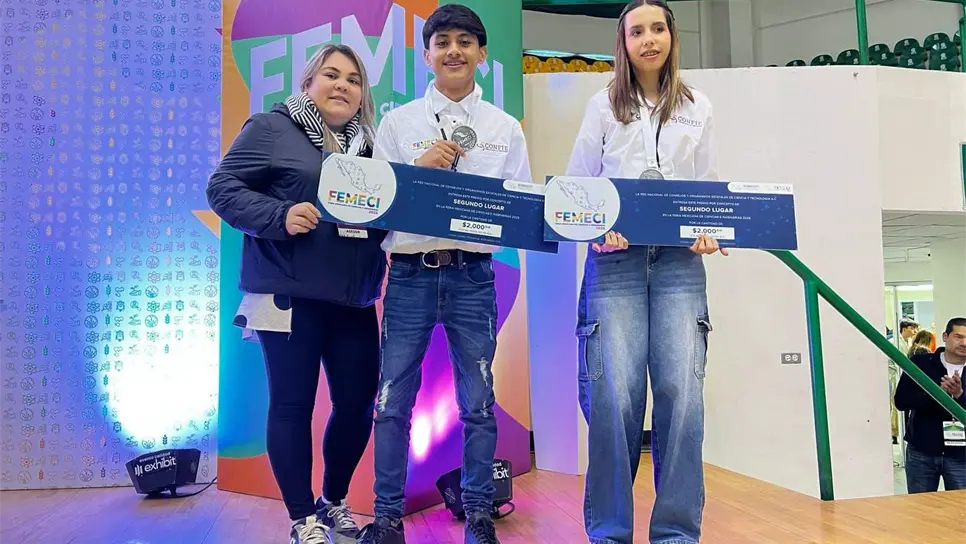 Culiacán, Sinaloa, a 14 de marzo de 2025. – Los alumnos Marely Guadal López López y Jesús Omar Álvarez Tapia, del COBAES 38 “Lic. Marco Antonio Arroyo Camberos” de Mazatlán, quienes integran la delegación de Sinaloa, obtuvieron el segundo lugar en la Feria Mexicana de Ciencias e Ingenierías (FEMECI) 2025, celebrada en Ciudad Juárez, Chihuahua.