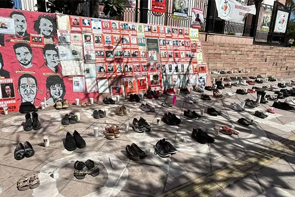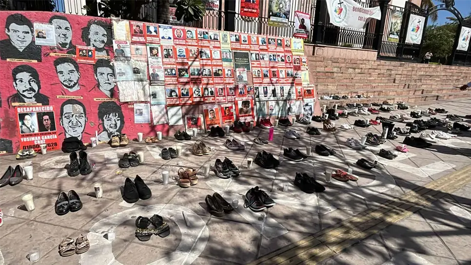 Un grupo de madres rastreadoras llevó a cabo una manifestación en Culiacán, colocando decenas de pares de zapatos en la Plazuela Álvaro Obregón, como símbolo de las víctimas encontradas en una fosa clandestina en Jalisco.