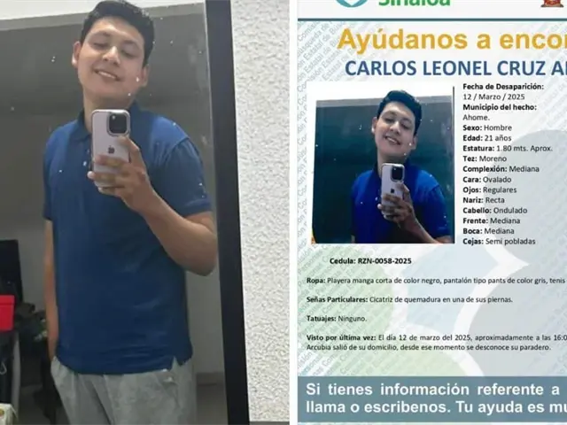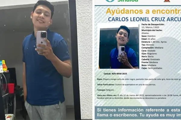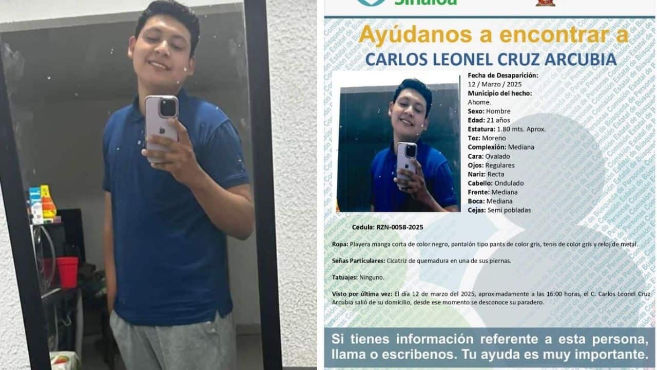 Si usted ha visto a Carlos Leonel Cruz Arcubia o cuenta con información que ayude a su familia y a las autoridades a localizarlo, favor de comunicarse al 6688-16-40-63 en la Dirección de Apoyo a Búsquedas de Personas Desaparecidas; también directamente al 6682-65-49-10, con Dulcina Parra, directora de la oficina municipal en mención, o al 698-112-7691 con Mirna Nereida Medina, líder del colectivo de búsqueda Rastreadoras de El Fuerte.