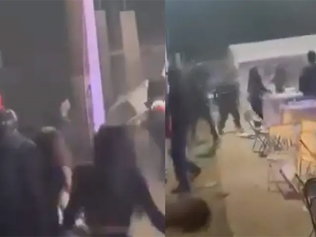 Videos difundidos en redes sociales muestran a los involucrados atacándose con machetes, botellas y sillas, mientras algunos asistentes intentaban resguardarse.