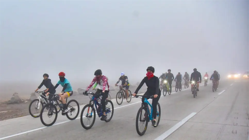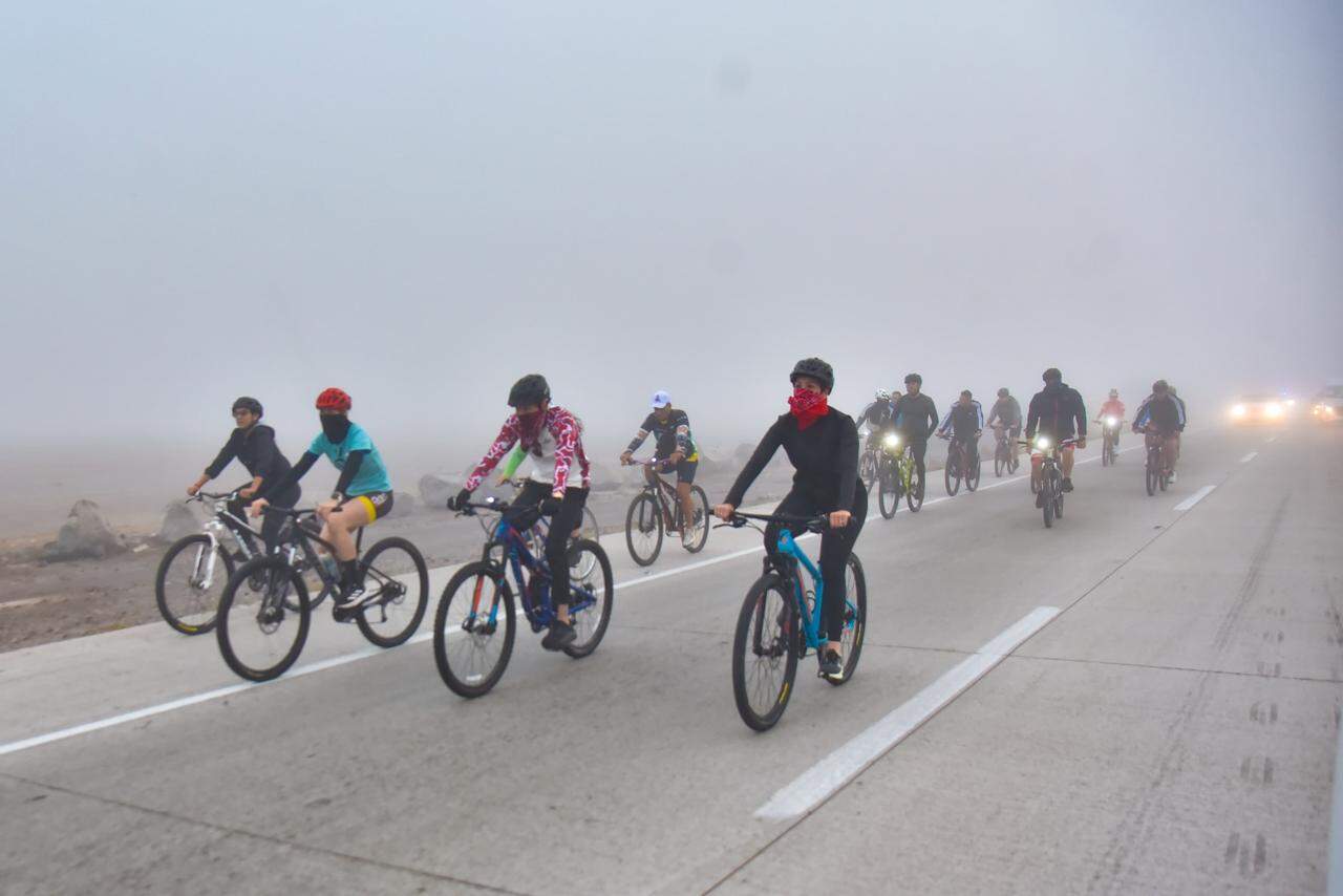 Con el sol apenas asomándose en el horizonte, el Alcalde de Ahome, Gerardo Vargas Landeros, encabezó una rodada ciclista por la carretera que conecta Los Mochis hasta Topolobampo.