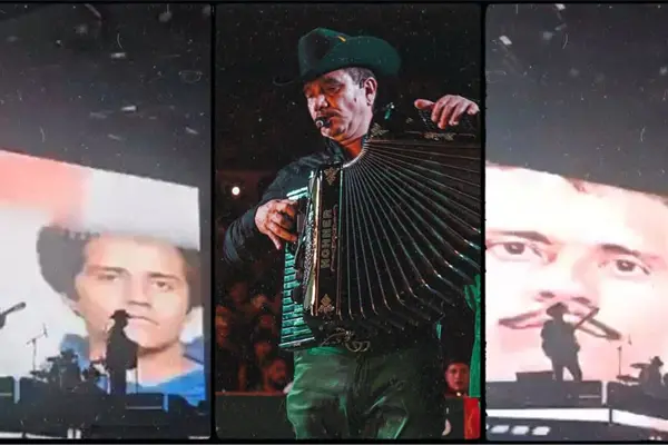 En el concierto, la banda proyectó imágenes de 'El Mencho' mientras interpretaba la canción El del Palenque, cuyo contenido enaltece a grupos armados del CJNG.