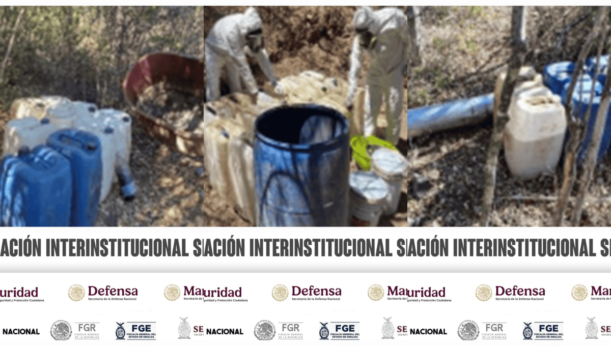 Personal del grupo interinstitucional aseguró y desmanteló 11 laboratorios clandestinos durante este domingo 30 de marzo en los municipios de Culiacán y Cosalá.