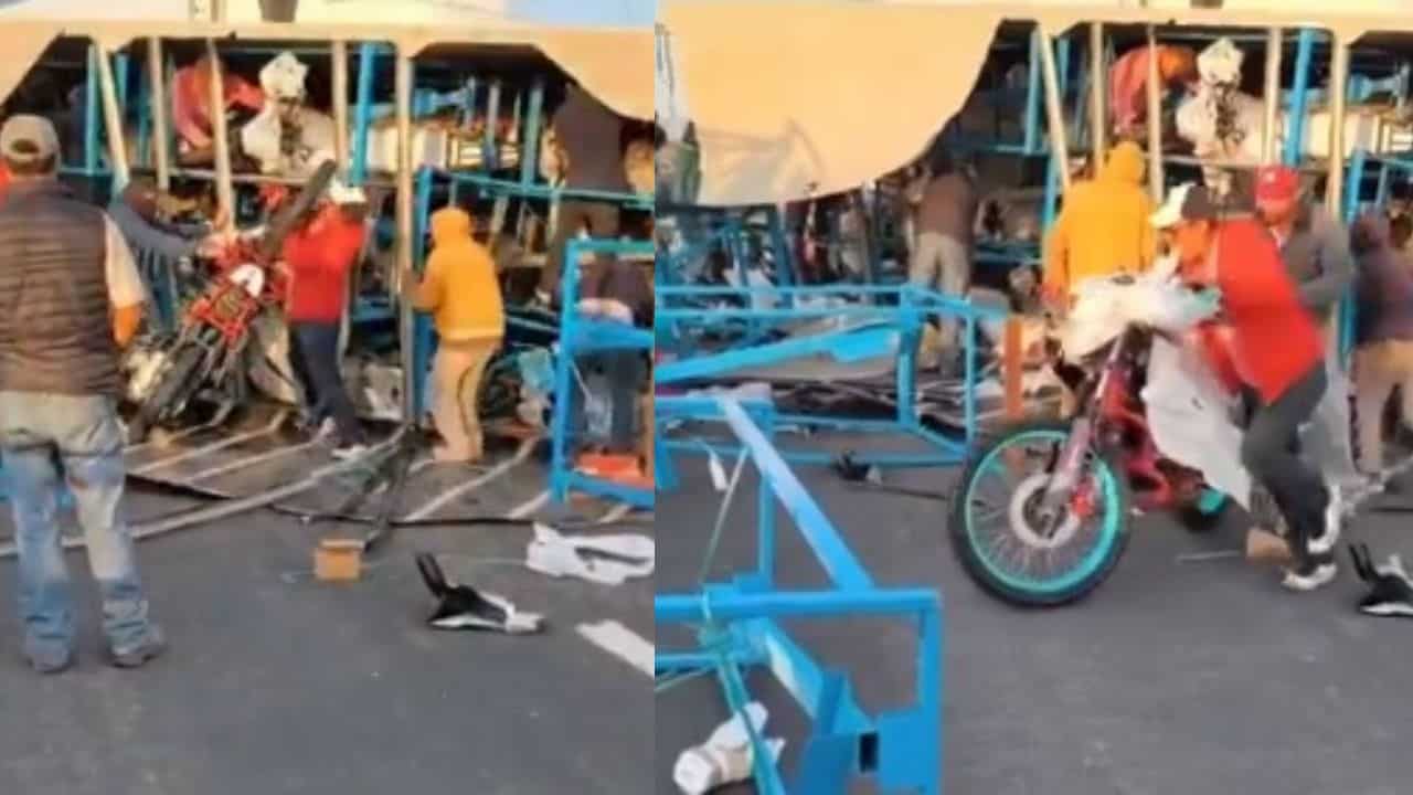 Vuelca tráiler cargado de motocicletas; pobladores aprovechan para robar | VIDEO