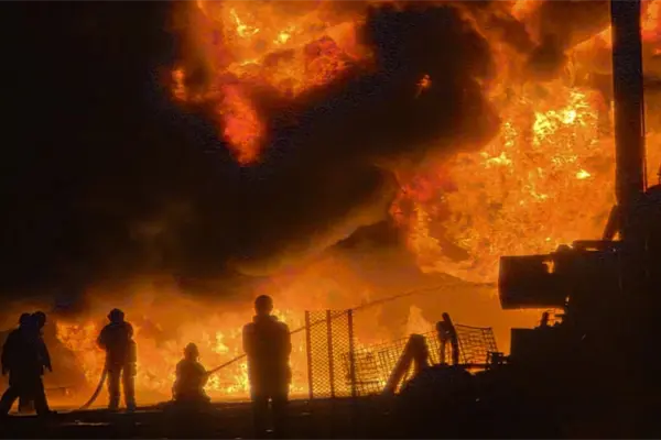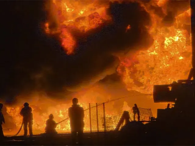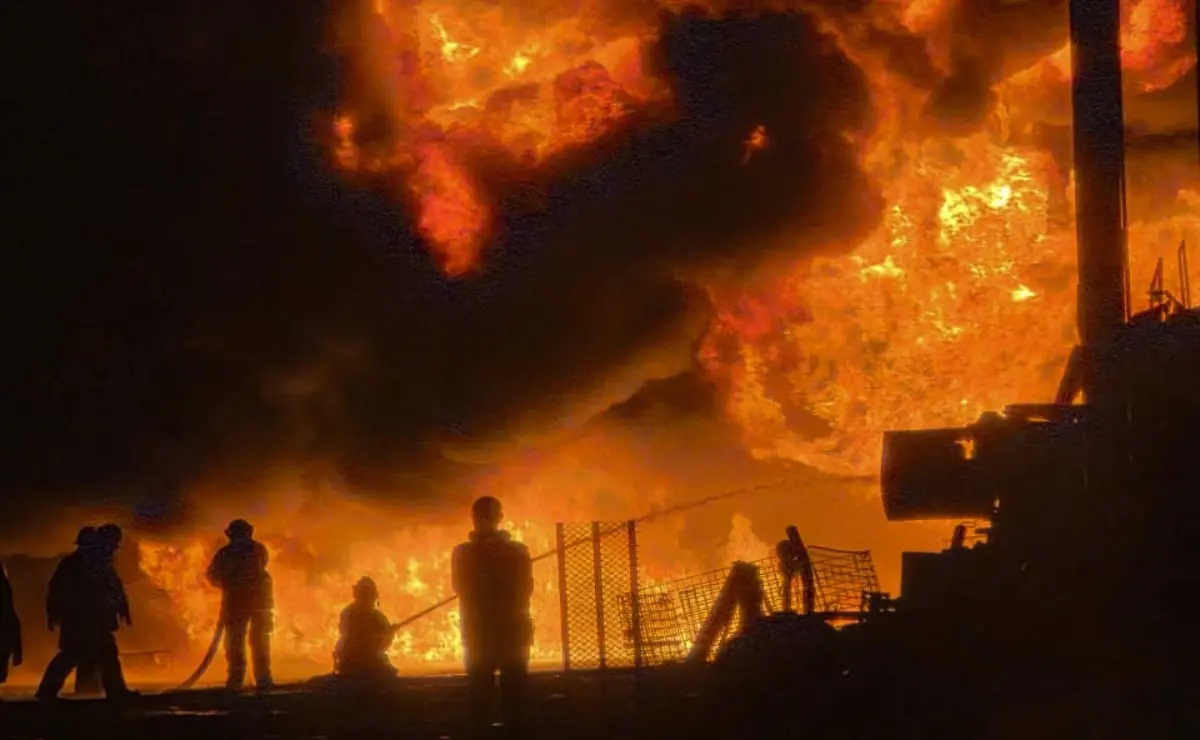 Por lo menos nueve tanques con combustible se incendiaron en la zona.