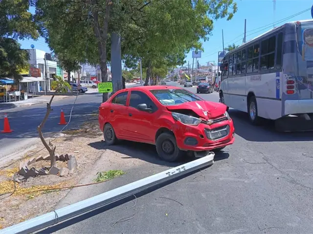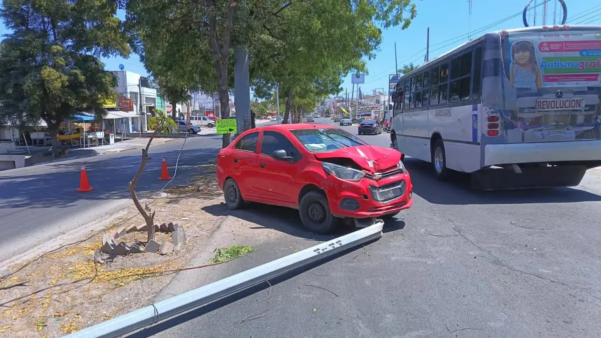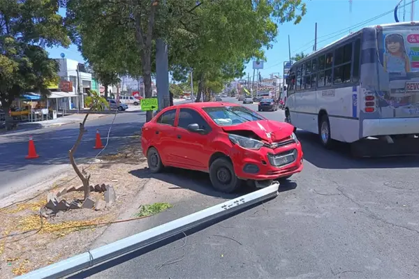 La conductora aceleró la marcha sobre la misma avenida y al llegar al cruce con el boulevard Francisco I Madero perdió el control de la unidad y derribó un poste del alumbrado público.