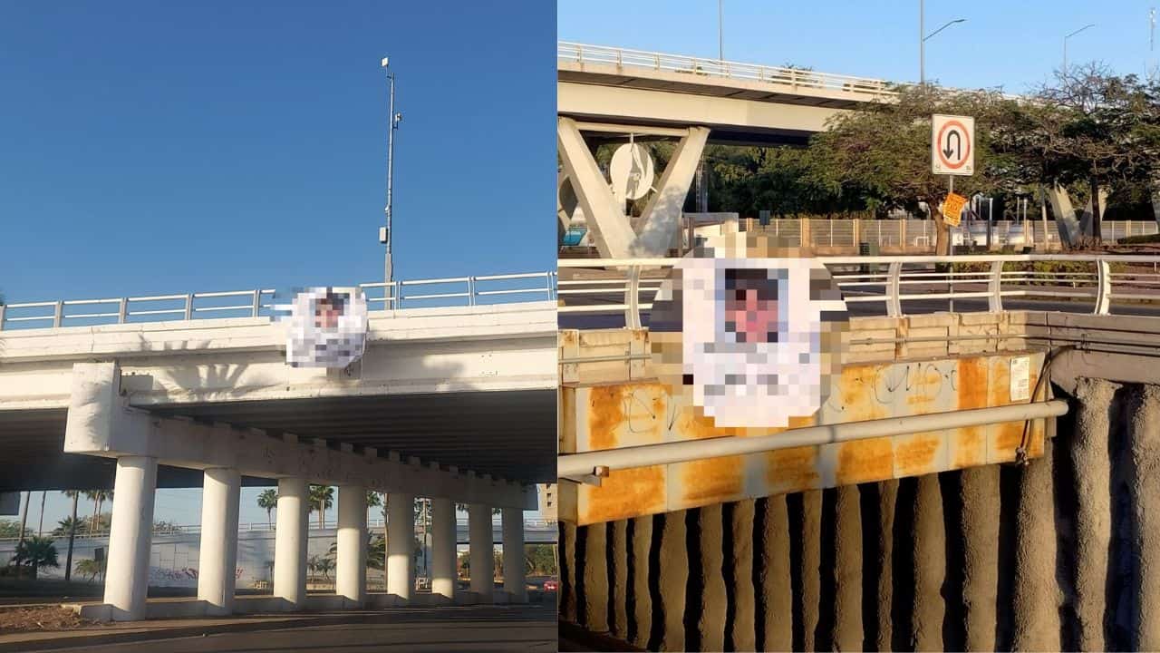 Sujetos colocaron mantas en el puente del bulevar Pedro Infante y otra más en el distribuidor vial del fraccionamiento Infonavit Humaya en Culiacán.