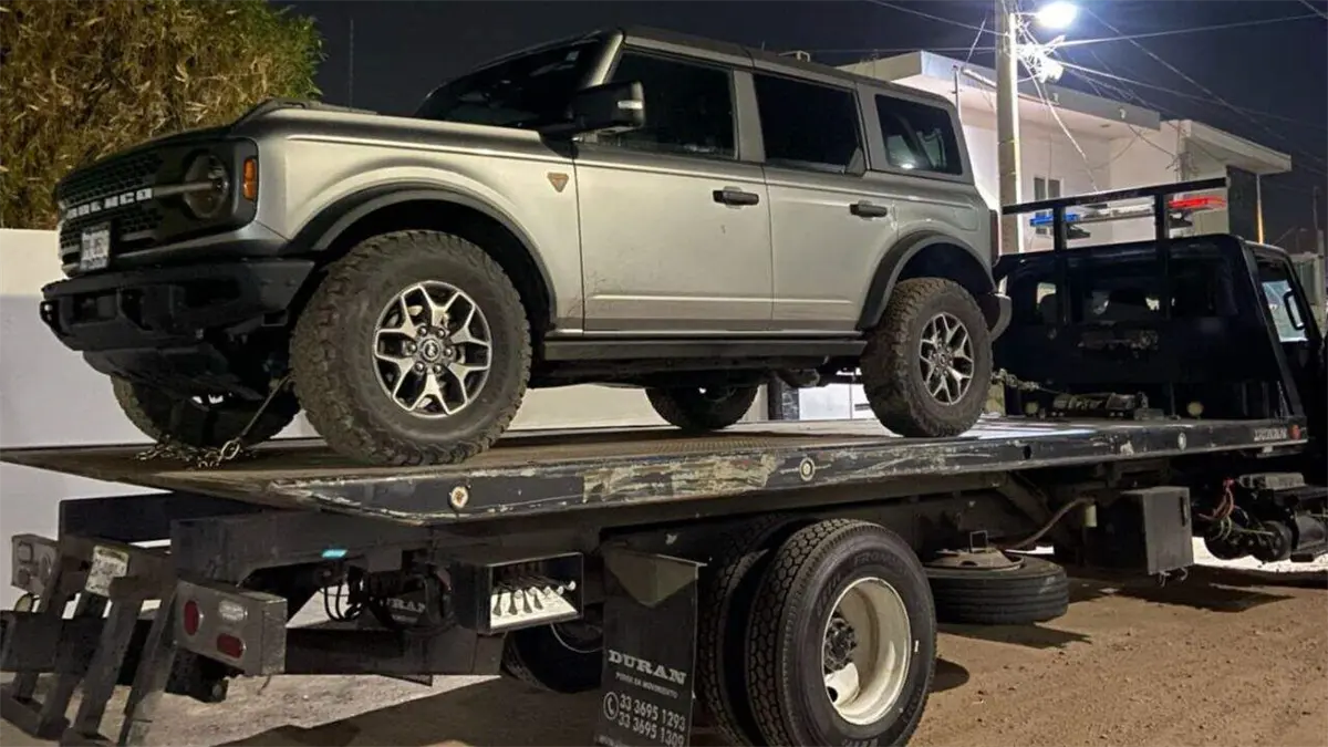 Minutos después, en la colonia Villa Fontana, localizaron una camioneta, marca Ford, línea Bronco, de modelo reciente, con características similares a las de la unidad reportada; al verificar, se constató que se trataba de la misma.