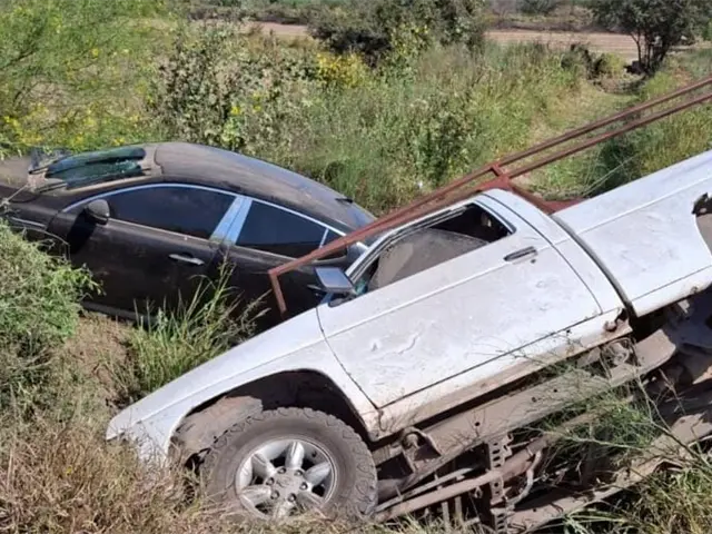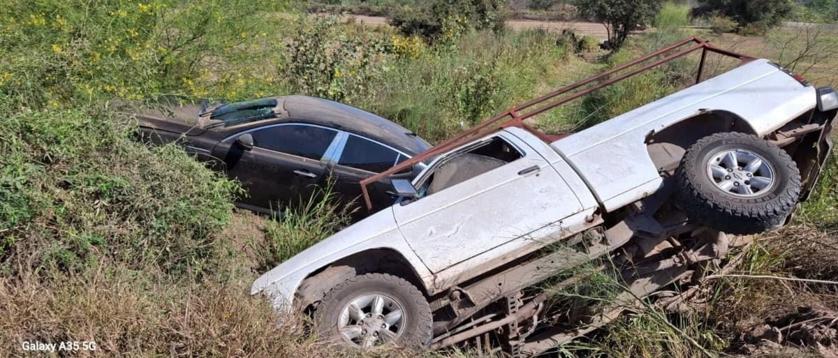 Con el golpe, ambas unidades se salieron de la rúa estatal y quedaron dentro de una cuneta. Incluso, la camioneta quedó volcada hacia un costado.