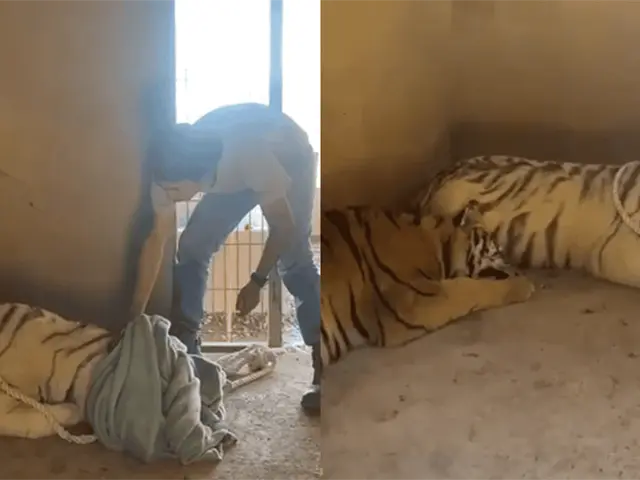 "El día de hoy acudimos al llamado de SEMARNAT y PROFEPA a rescatar a dos tigres, los encontramos muy alterados, violentos y muy agresivos, dura tarea de rehabilitación nos espera, pero creo que lo lograremos", se lee en un video publicado en Instagram.